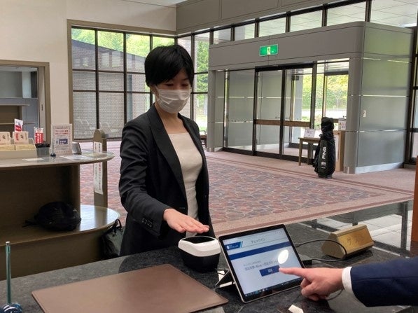 指静脈スマートチェックインの実証実験は、北海道の早来カントリー倶楽部にて実施します。これまで同ゴルフ場では、受付時に毎回、利用者が手書きによる記帳を行っており、受付時間や新しい生活様式で推奨される非接触への対応が課題となっておりました。