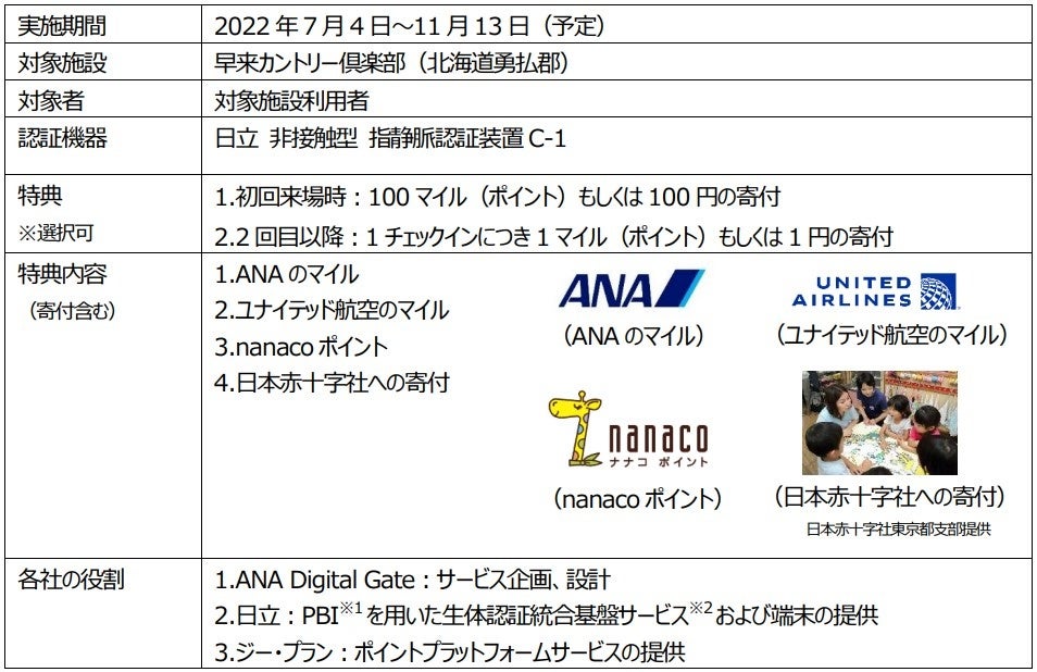 ANA Digital Gate株式会社(本社:東京都中央区、代表取締役CEO:渋谷 友邦/以下、「ANA Digital Gate」)、株式会社日立製作所(本社:東京都千代田区、代表執行役 執行役社長兼CEO:小島 啓二/以下、「日立」)、ジー・プラン株式会社(本社:東京都品川区、代表取締役執行役員社長:竹内 庸真/以下、「ジー・プラン」)の3社は、店舗のDX化を支援するため、7月4日より、ゴルフ場において、指静脈認証とANAのマイルを含む各種ポイント付与が可能なスマートチェックインサービス(以下、指静脈スマートチェックイン)に関する共同実証実験を実施し、その有用性を検証します。