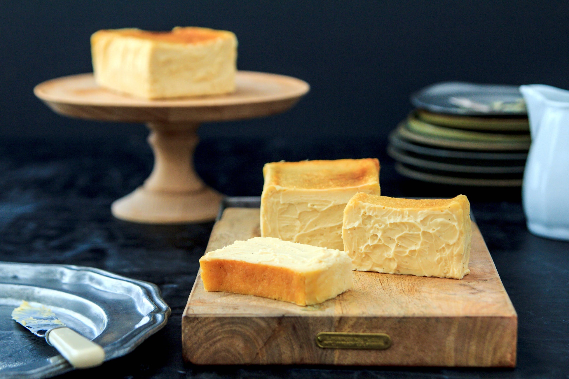 北海道チーズ・生クリーム・発酵バターの濃厚生地に自家製焦がしキャラメルクリームが隠し味。濃厚ながらも心地のいい酸味が後を引く味わいで夏のおやつにぴったりです。
