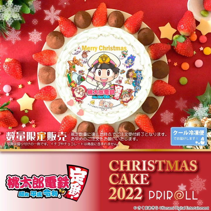 「プリロール」を運営する株式会社栄通(本社:東京都八王子市)は、『桃太郎電鉄 ~昭和 平成 令和も定番!~』のクリスマス限定デザインのプリントケーキを2022年11月8日(火)より予約受付開始いたしました。