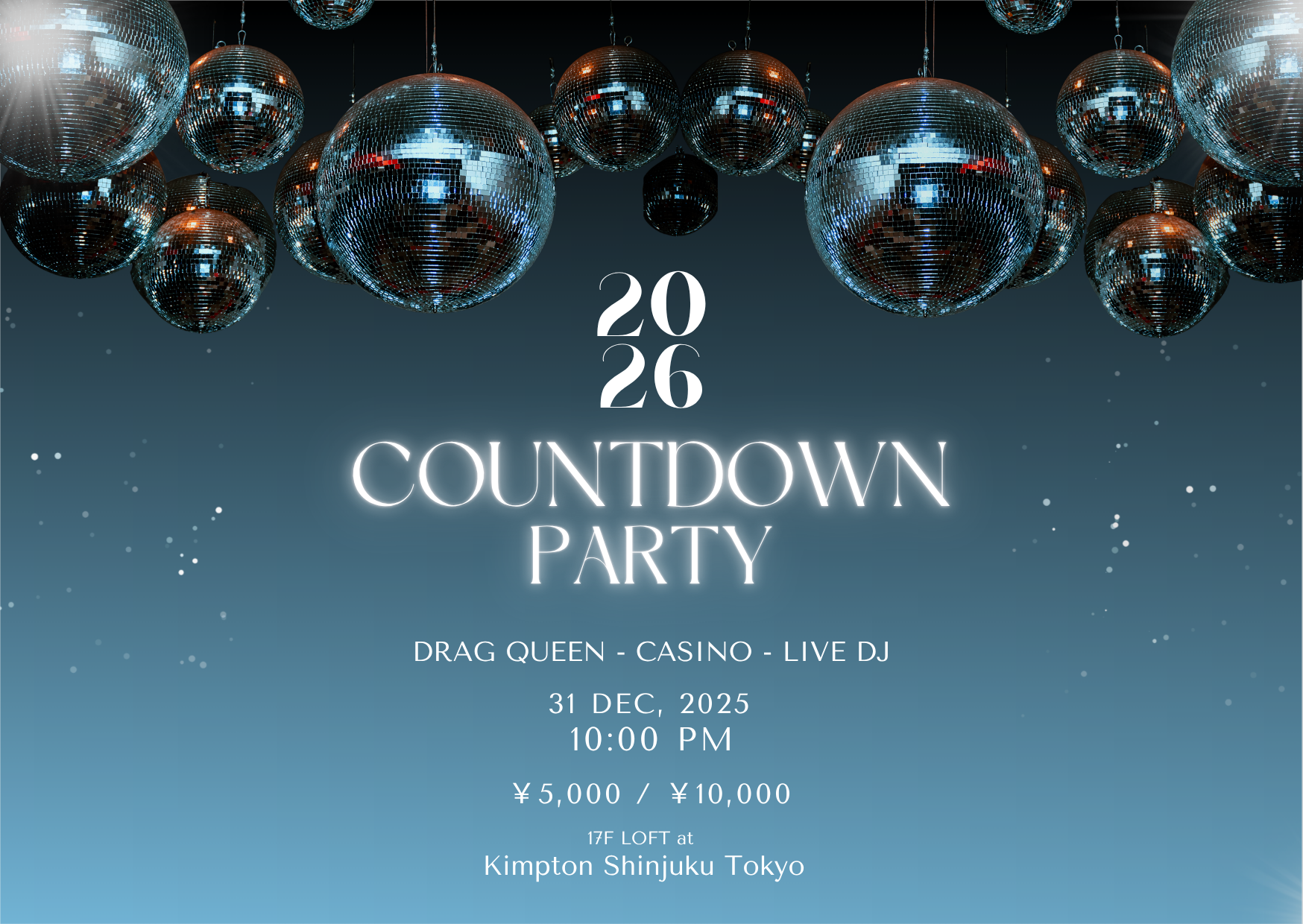 ラグジュアリーライフスタイルホテルのキンプトン新宿東京では、 2025年12月31日(水)22:00より、最上階17階のロフトにて「カウントダウンパーティー 2025-2026」を開催いたします。今年のテーマは “Drag Queen×Casino×DJ”!ホテル最上階の煌めく会場で、ドラァグショー、カジノゲーム、DJミュージックが織りなす刺激たっぷりのカウントダウンイベントをお楽しみください。