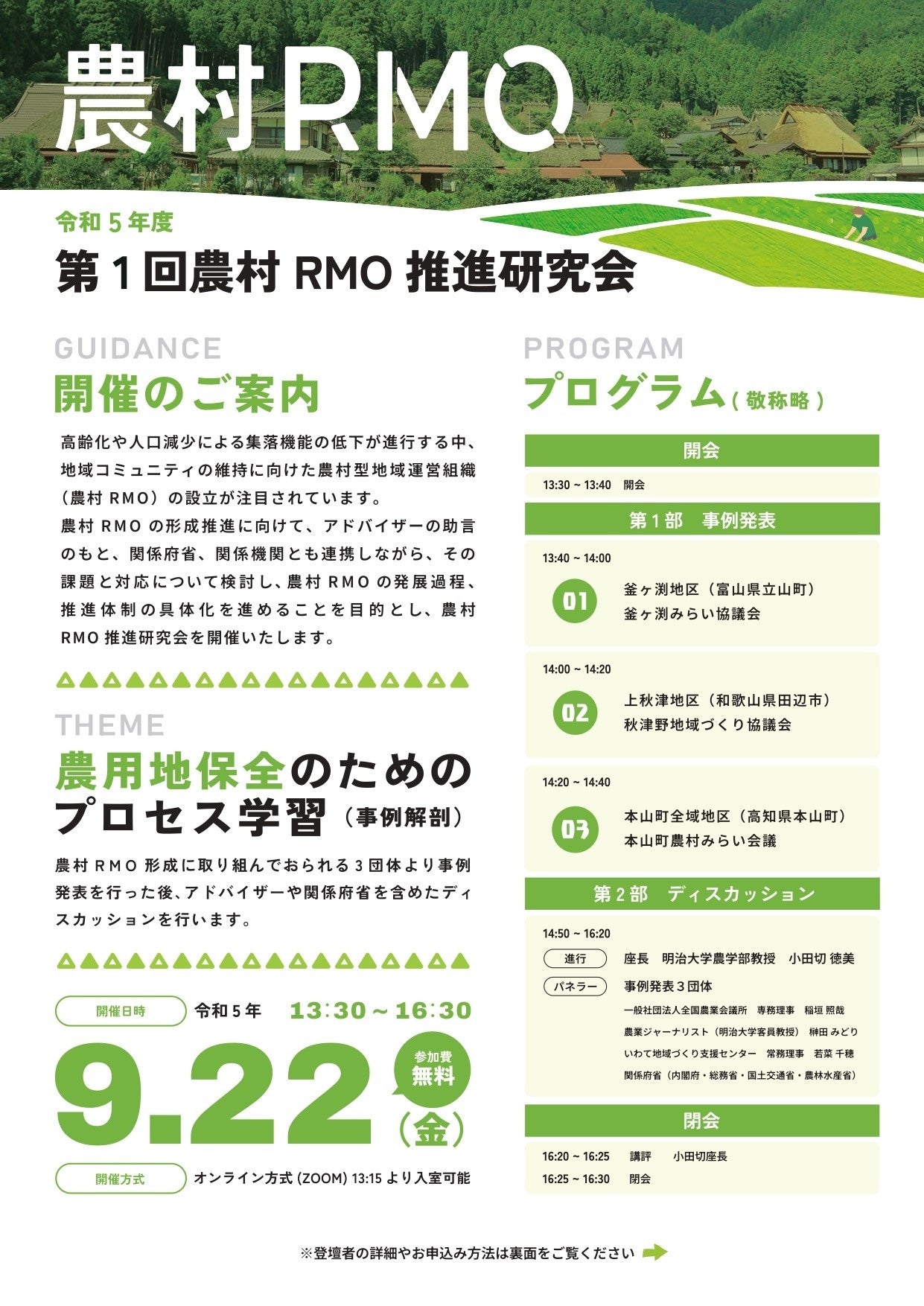 ▼「令和5年度 第1回農村RMO推進研究会」チラシ