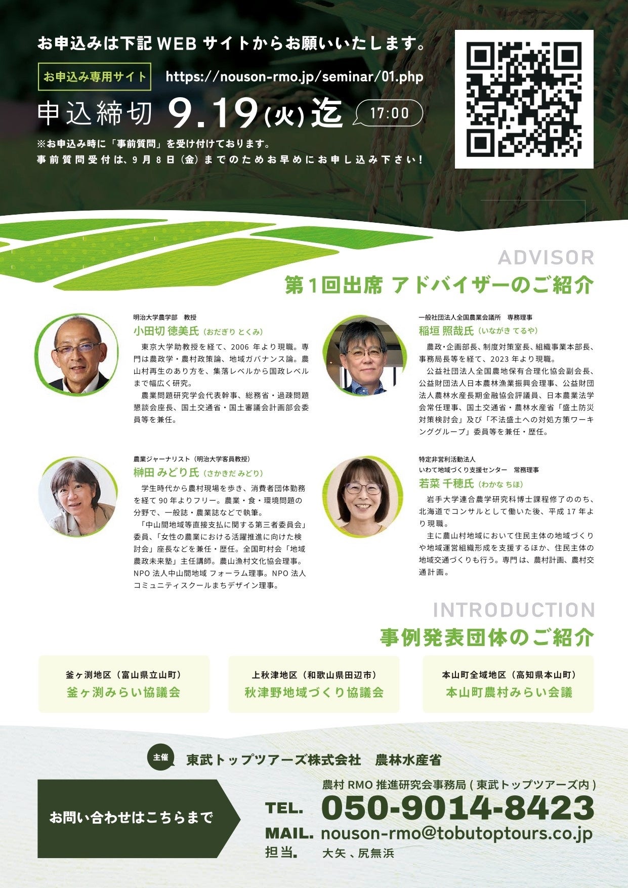 東武トップツアーズ、農林水産省との共催により「農村RMO推進研究会」を実施します