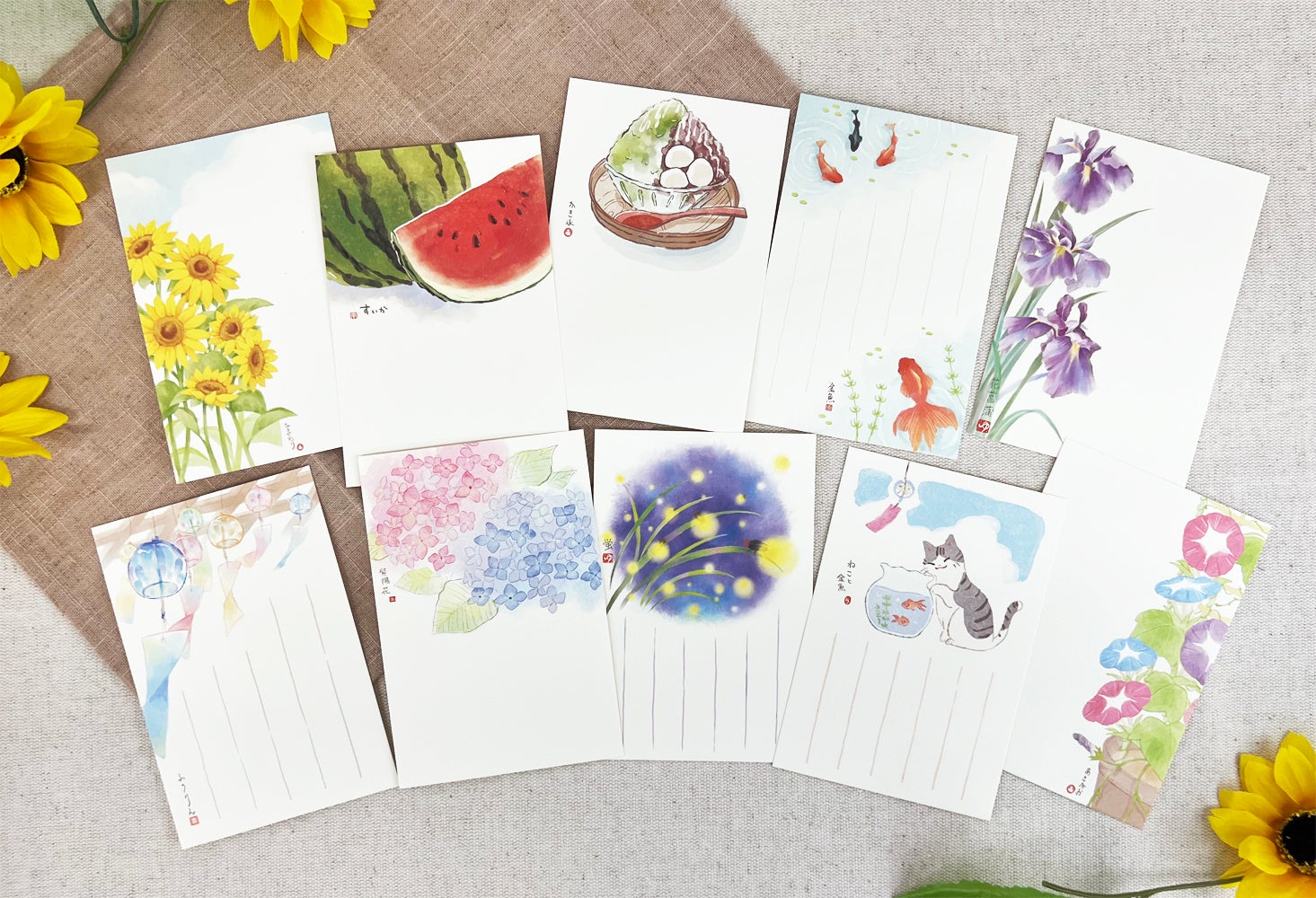 郵便局限定販売商品として季節ごとに展開している『絵入りはがき』の2023年の夏柄10種類が登場します。