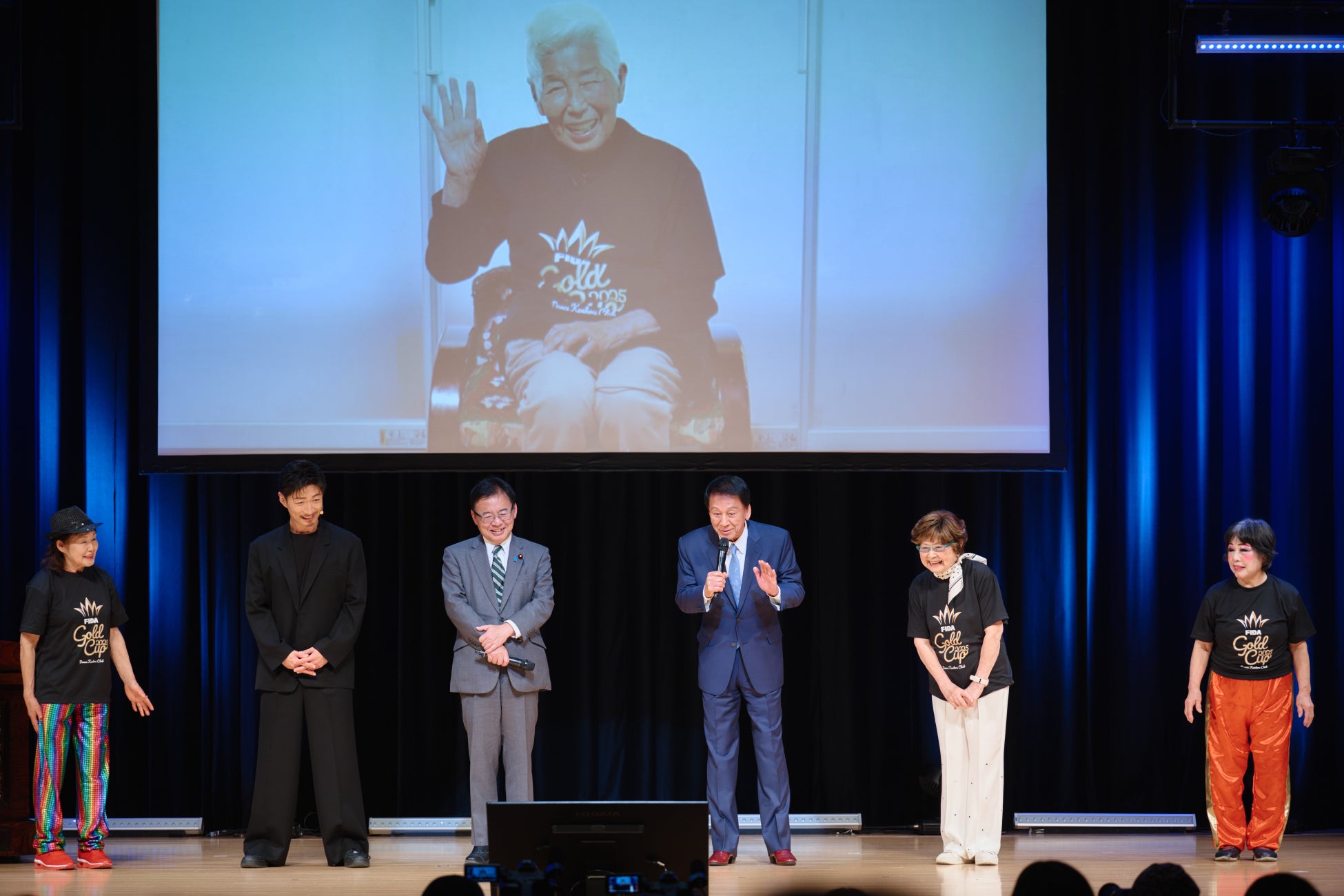 ステージには、上野賢一郎厚生労働大臣、厚生労働省 特別健康対策監 杉良太郎氏らが登壇し、GOLDダンサーたちの挑戦を見守りました。