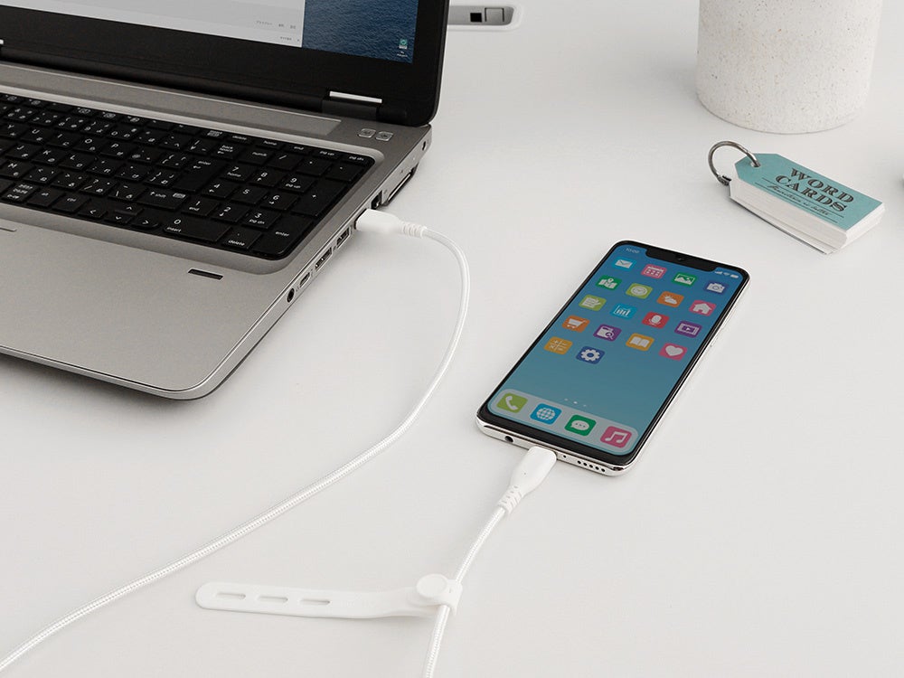 USB Power Delivery(PD)に対応しており、最大60W充電に対応。ハイパワーな充電器と併用すれば、充電時間の短縮が可能です。また、データ転送にも対応しているので、スマートフォンからノートPCに写真や動画などを移動できます。