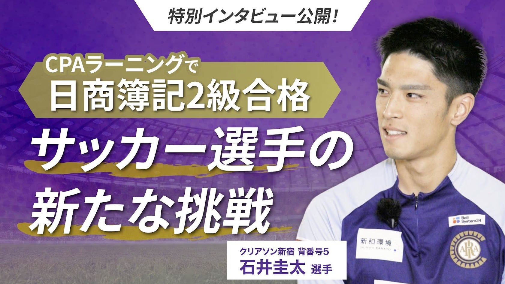 この度、CPAエクセレントパートナーズ株式会社(代表取締役:国見 健介、所在地:東京都新宿区)がパートナーシップを締結するクラブ、クリアソン新宿の石井圭太選手が、会計ファイナンス人材向けeラーニングプラットフォーム「CPAラーニング(https://www.cpa-learning.com/)」を活用し、簿記2級に合格しました。