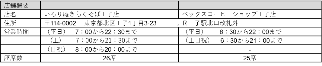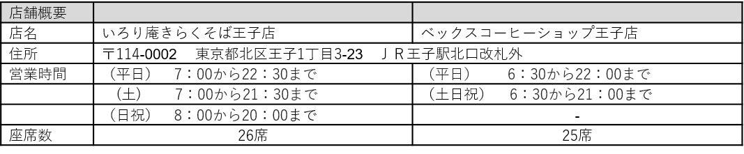 株式会社JR東日本クロスステーション フーズカンパニー(所在地:東京都台東区、カンパニー長:日野正夫)は、4月22日(金)に、主要ブランド「いろり庵きらくそば王子店」と「ベックスコーヒーショップ王子店」をJR王子駅北口改札外にオープンします。