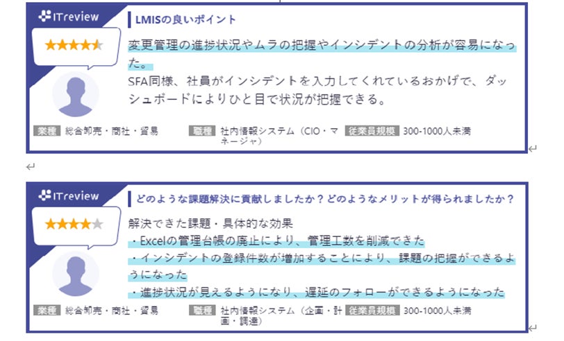 コメントの詳細はこちら:https://www.itreview.jp/products/lmis/reviews