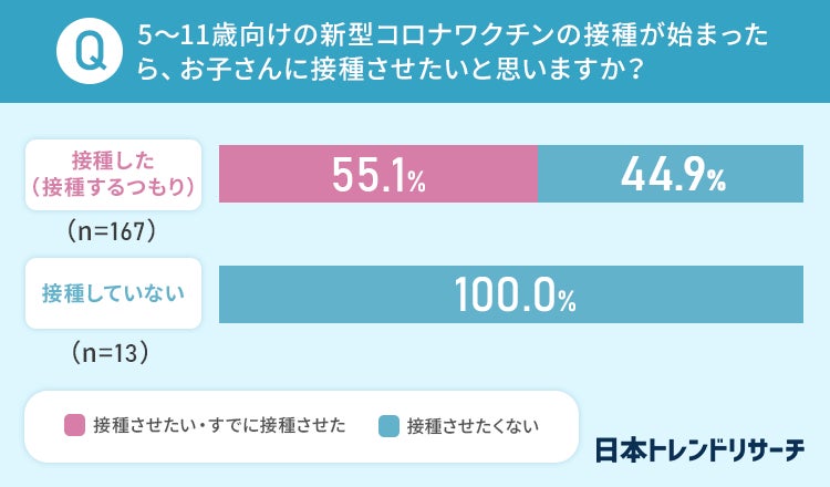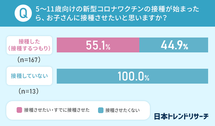 当時は、5~11歳向けの接種が始まっても約半数の方が「接種させたくない」と回答していましたが、実際に接種が始まった現在はどのように考えている方が多いのでしょうか。