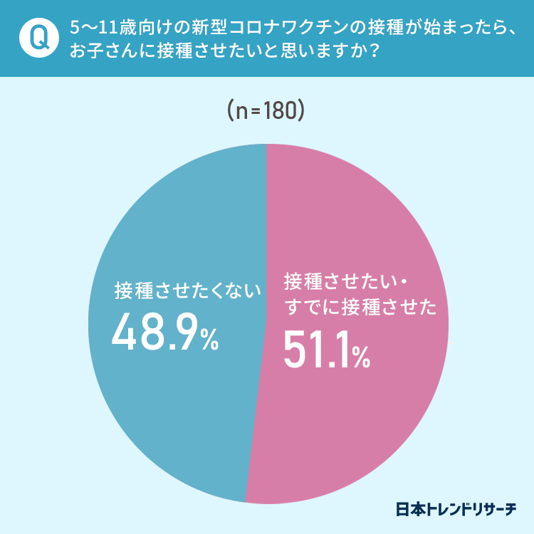 今回は、事前調査で「5~11歳のお子さんがいる」と回答した全国の男女90名ずつ、計180名を対象に、新型コロナワクチン接種についてアンケートを実施しました。