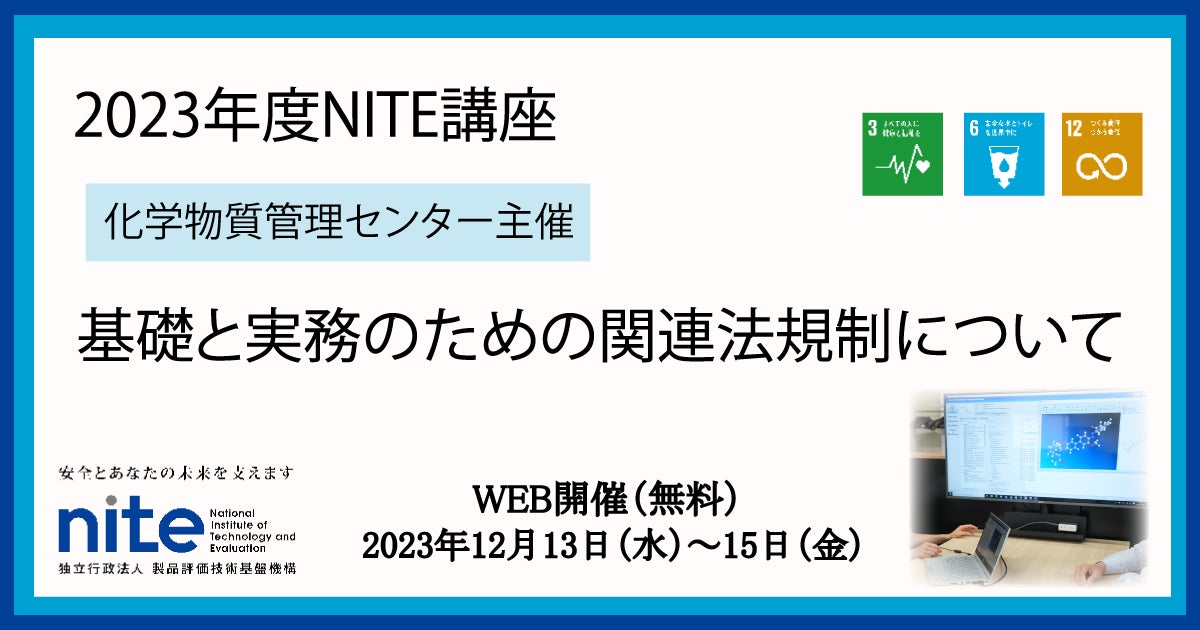 【残席あとわずか!】12/13~15無料ウェビナー、「NITE講座2023 化学物質管理 ~基礎と実務のための関連法規制について~」を開催!