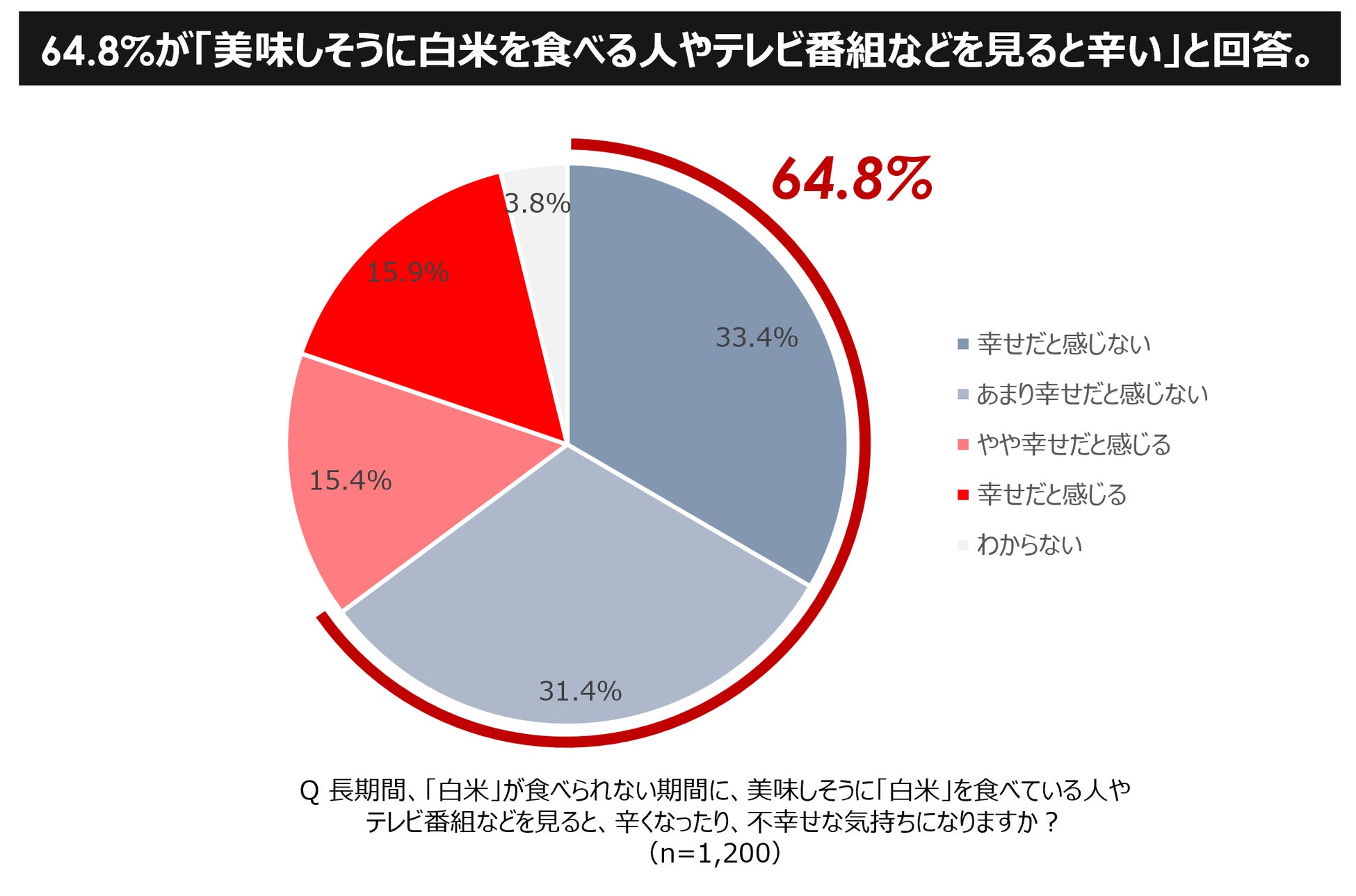 ・64.8%が「美味しそうに白米を食べる人やテレビ番組などを見ると辛い」と回答。