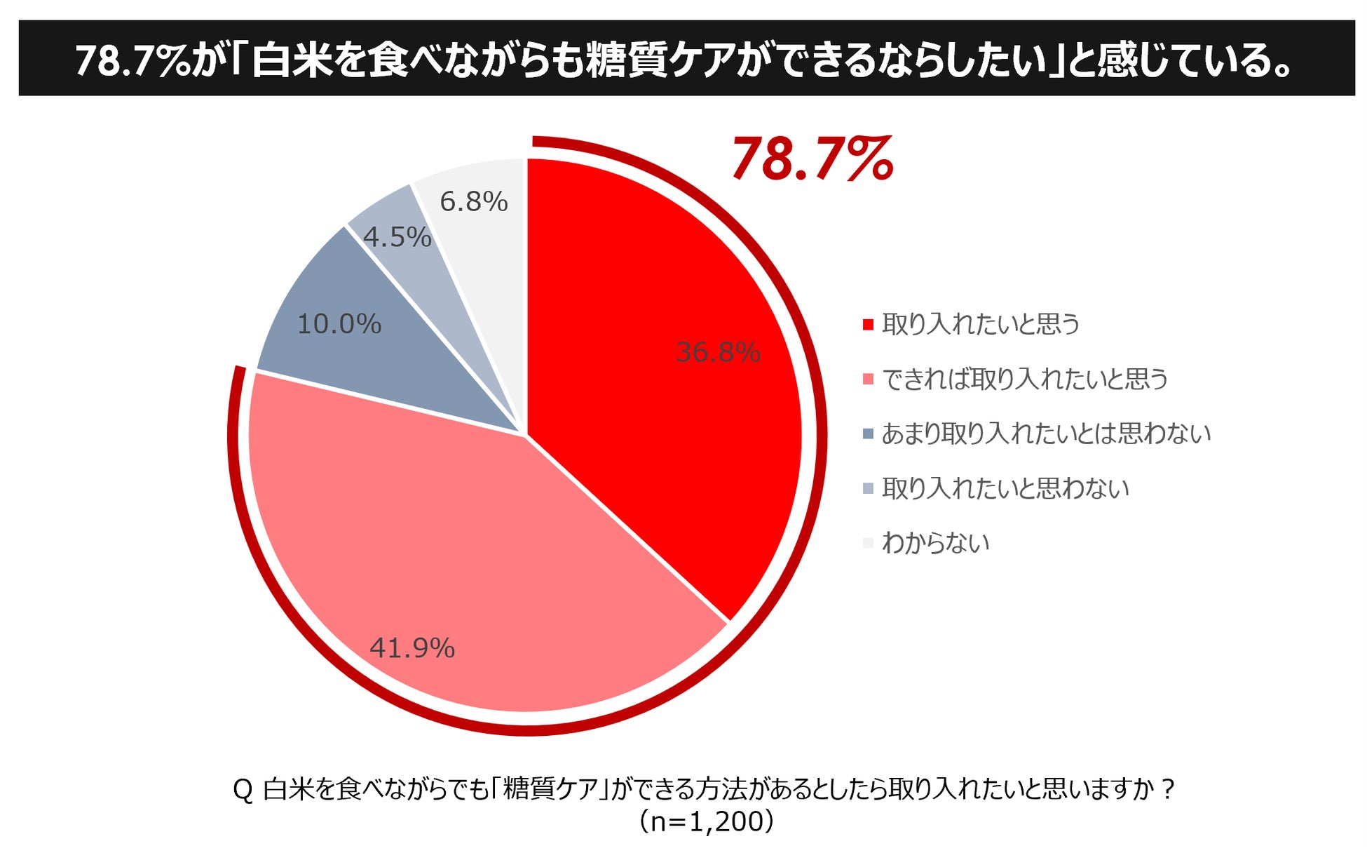 78.7%が「白米を食べながらも糖質ケアができるならしたい」と感じている。