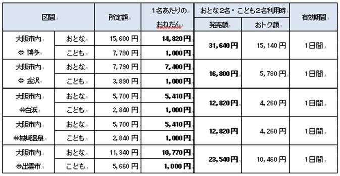・2名様以上(必ずこども1名様を含む)が同一行程(同一の区間、同一の列車)でご旅行される場合に限り発売します。