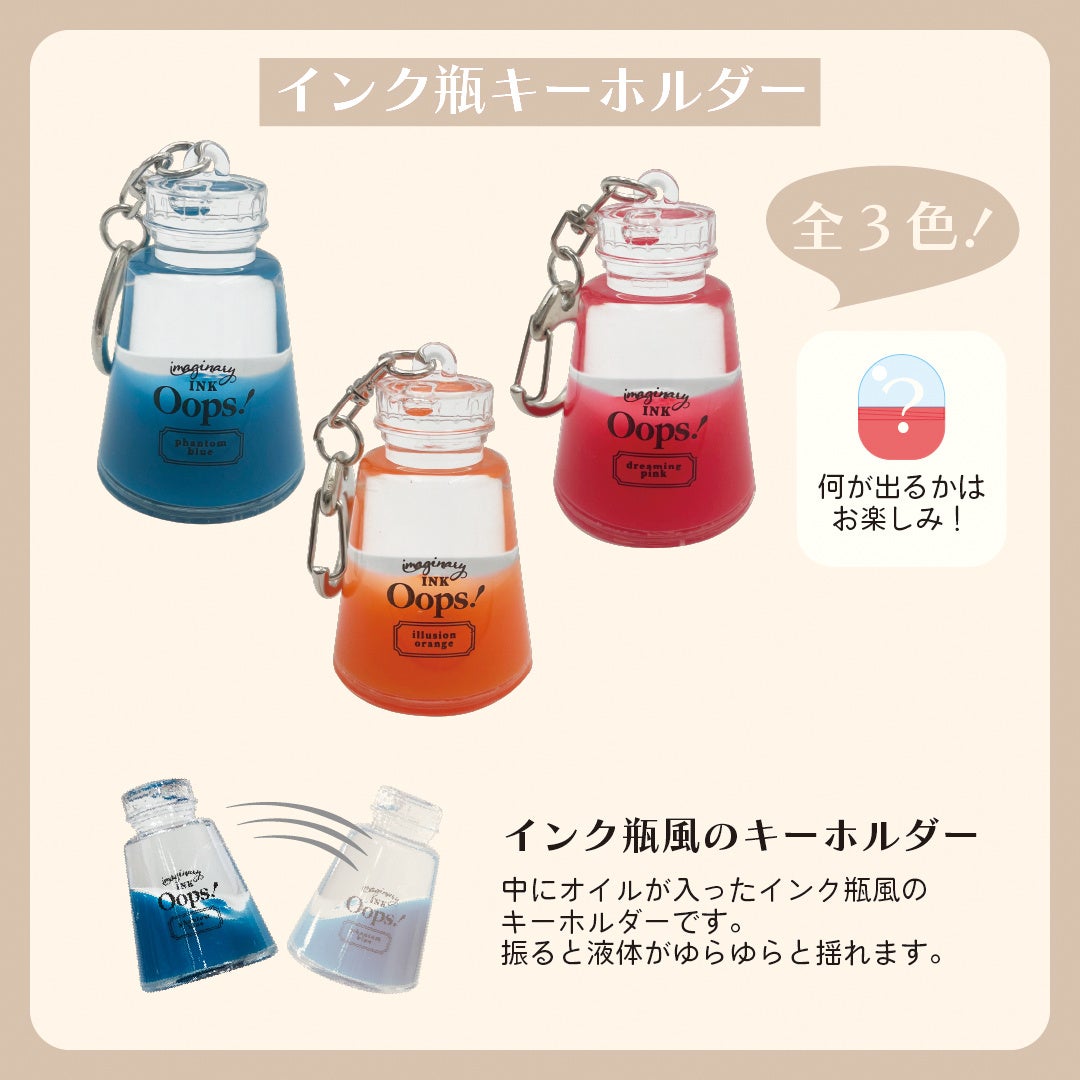 (右)トレーディングインク瓶キーホルダー (全3色) Oops! 各550円(税込)