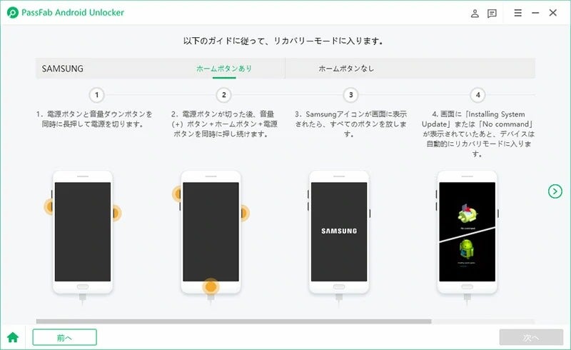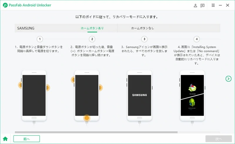 Step4:画面の指示に従って、スマホをリカバリーモードにして操作します。