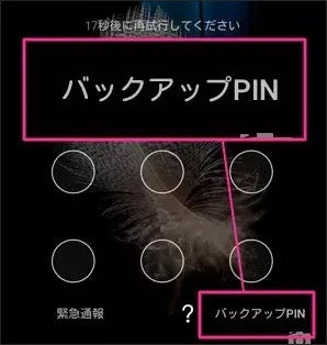 Step2:間違ったパターンを入力しているうちに、「バックアップPIN」や「パターンを忘れた場合」などのオプションが表示されることがありますので、表示されたらタップします。