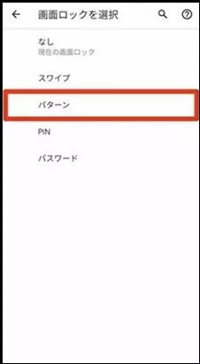 Step1:スマホの「設定」アプリを開き、「セキュリティ」>「画面ロック」の順にタップして、画面ロックの種類の中から「パターン」を選択します。