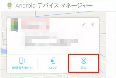 Step2:対象のGoogle アカウントに紐づいているデバイスが表示されますので、パターンロックを解除できないAndroidスマホを選択し、「消去」を押して初期化します。