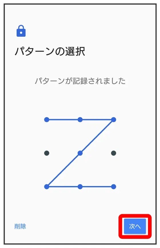 Step2:4つ以上の点を一筆書きで結んで設定したいパターンを入力し、「次へ」をクリックします。
