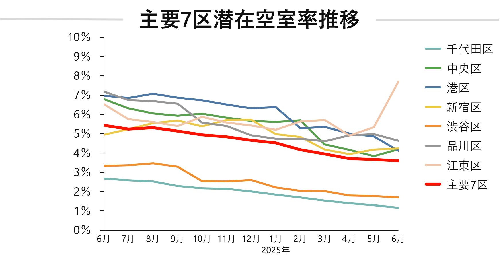 主要7区の空室率は3.58%で前月比-0.07pt。