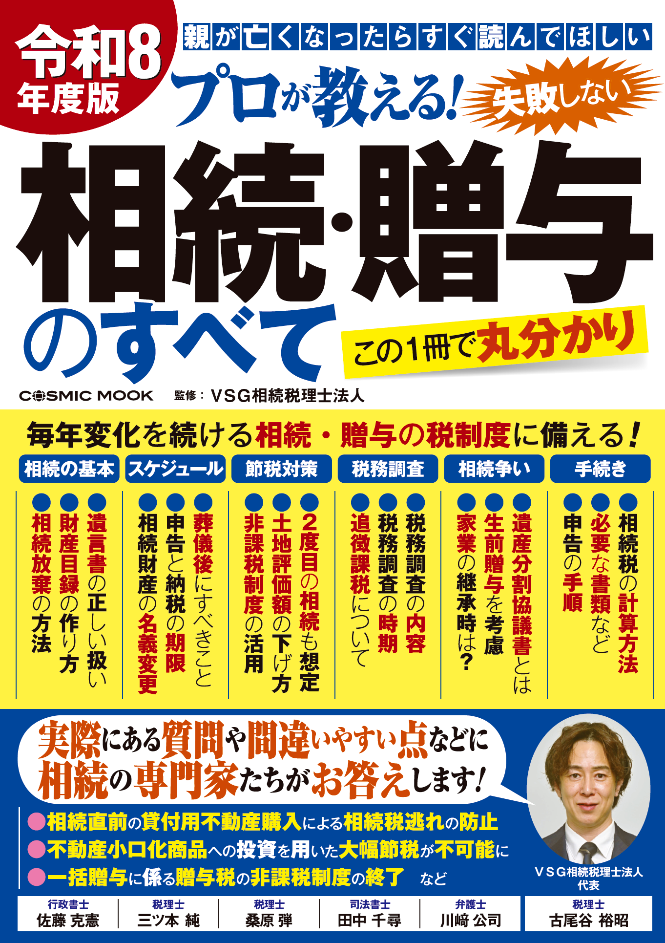 年間3,500件超の相続税申告実績を持つVSG相続税理士法人(本社:東京都中央区、代表税理士:古尾谷裕昭)は、『令和8年度版 プロが教える!失敗しない相続・贈与のすべて』(監修:VSG相続税理士法人/出版社:株式会社コスミック出版)を、2026年4月21日(火)に発売いたしました。