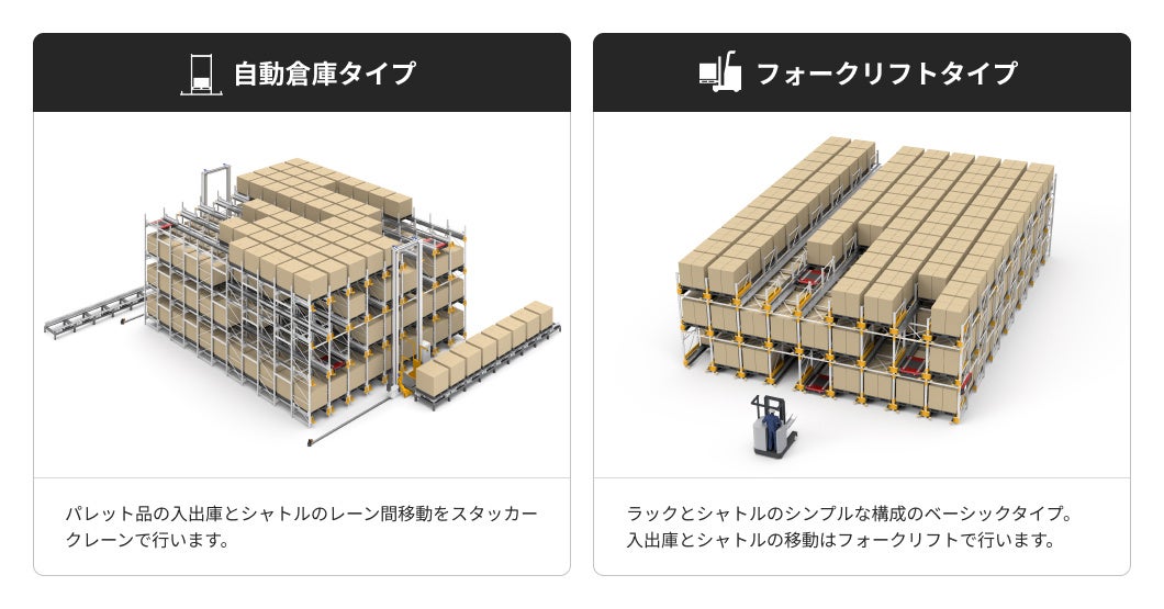 従来の「CYBISTOR」を「CYBISTORフォークリフトタイプ」とし、新タイプの「CYBISTOR自動倉庫タイプ」をラインアップすることで、運用や要件に応じて適したタイプを選択可能です。