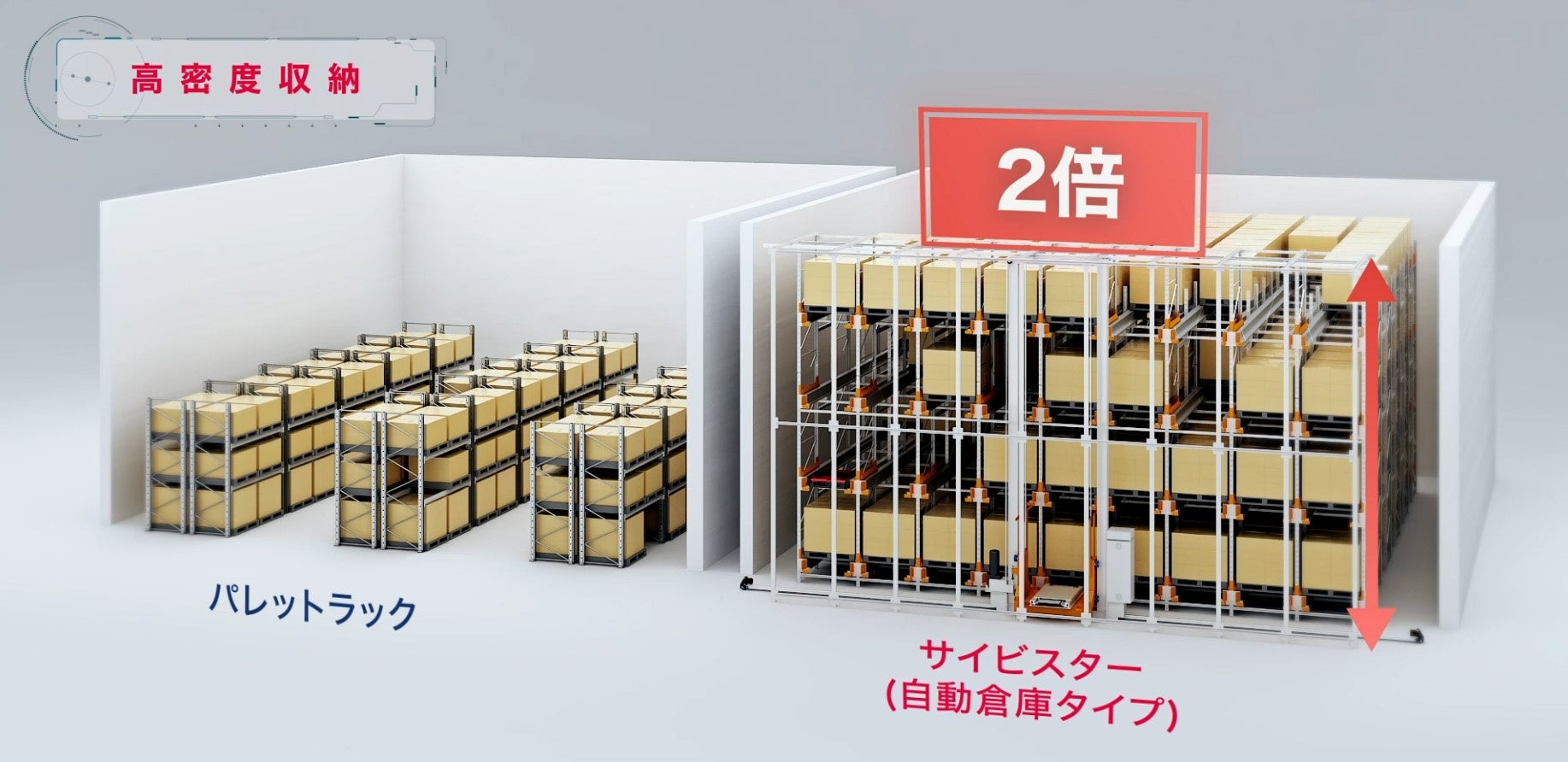 スタッカークレーンと組み合わせてパレットの保管・入出庫作業を自動化するパレット保管システム「CYBISTOR(サイビスター)自動倉庫タイプ」を発売