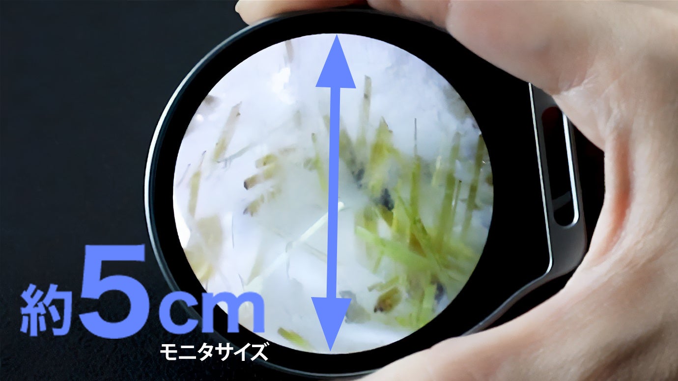 本体には480×480ピクセルの2.1インチ液晶モニターを搭載。観察している映像をその場で鮮明に確認でき、撮影のタイミングも逃しません。