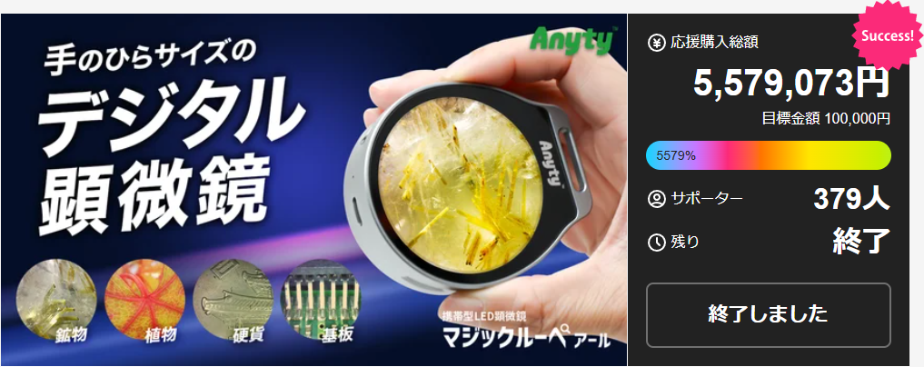 Makuakeで応援購入総額550万円超え!話題の手のひらサイズ顕微鏡「マジックルーペ アール(3R-MJL03)」がAmazonで一般販売開始