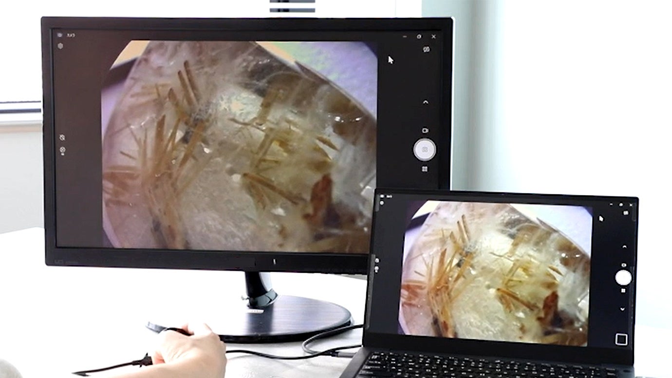 付属のUSBケーブルを使用すれば、PCカメラとしても利用でき、モニター画面上での大きな表示にも対応します。(OS標準のカメラアプリを利用します)
