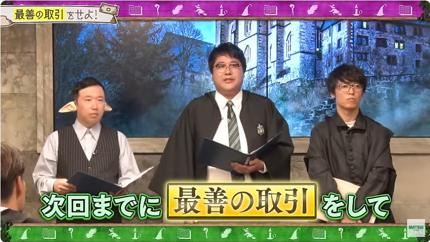 アドバイスに加え、テスタ校長が3人の生徒の取引を採点していきます。3人の点数は一体何点になるのでしょうか、取引経過から最終発表まで目が離せません。