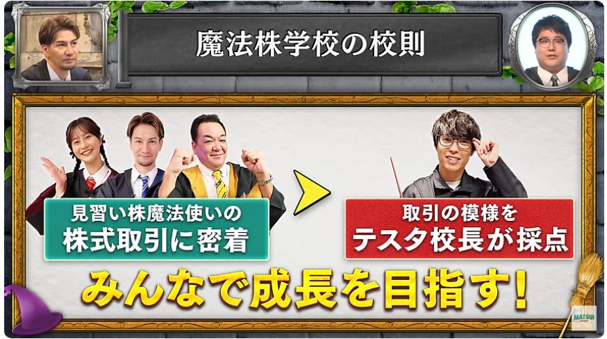 本作でも引き続き、総利益100億円を超える株式投資家テスタ氏に魔法株学校の校長として、お笑いタレントのマヂカルラブリー村上氏に副校長として登場していただきます。単純にお金を増やすだけではなく、取引の背景や取引プランの立て方、プランの実践方法など、実際の取引に重要な考え方を生徒の皆さんにお伝えしていきます。