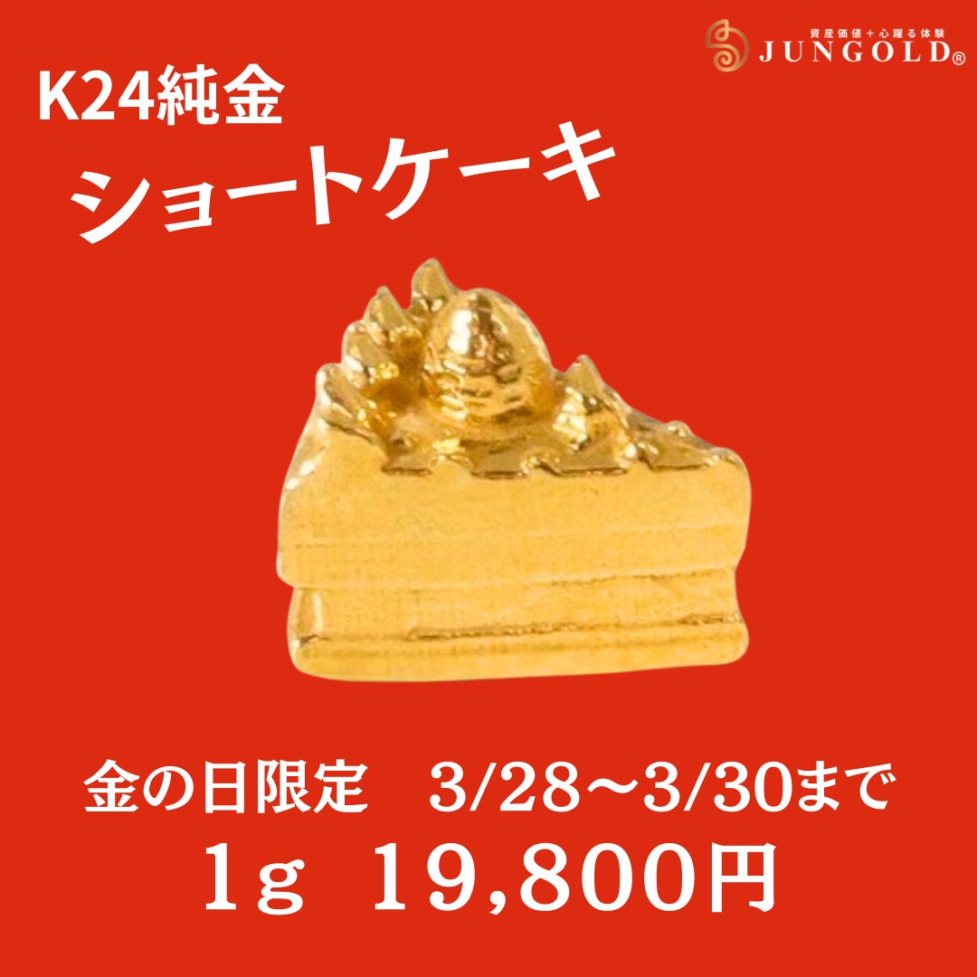 JUNGOLD(株式会社RAIN)は、話題のヌン活にぴったりな純金製のミニチュアショートケーキ(1g)を、2025年3月28日(金)〜30日(日)の3日間限定、特別価格19,800円にて販売します。