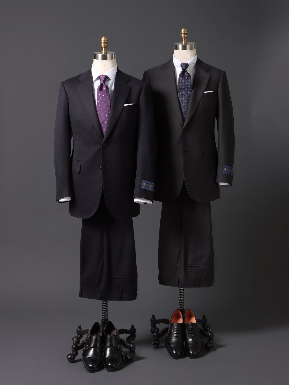 商品 ①ウールクリアツイルスーツ ②ウールモヘヤトロピカルスーツ