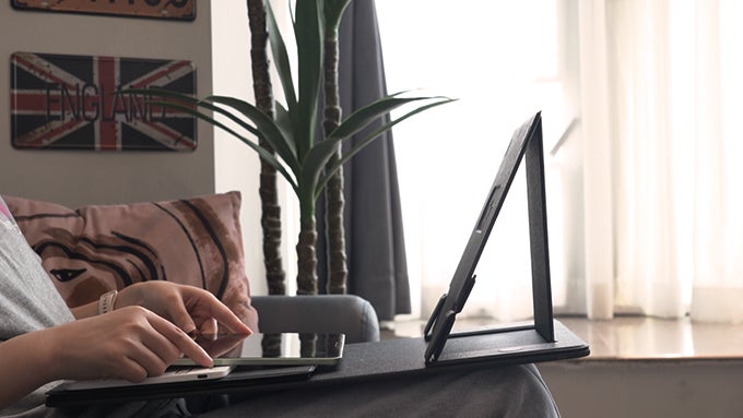 さらに、折りたたんで逆さに設置することで、ソファでのノートPCスタンドに早変わり。軽い作業や書き物の作業台としてもぴったりです。