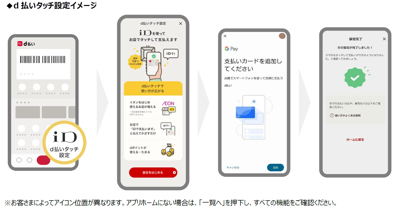 株式会社NTTドコモ(以下、ドコモ)は、Android 端末の「d払い®」アプリで、全国の「iD」加盟店約220万店舗以上でご利用いただけるd払いタッチを2024年1月29日(月)から提供開始いたします(※1、※2)。