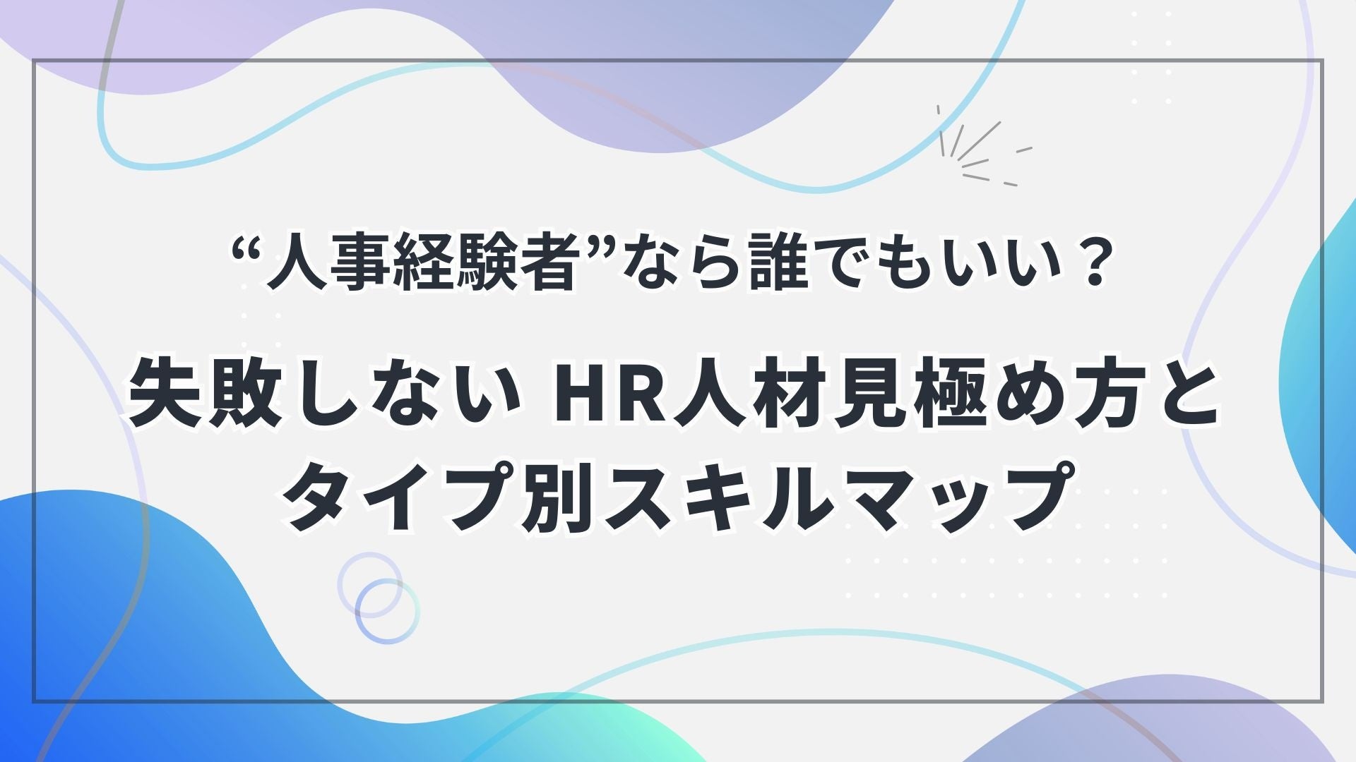 「“人事経験者”なら誰でもいい?」その採用、本当に大丈夫? 失敗しないHR人材の見極め方を徹底解説した資料を無料公開!~採用ミスマッチを防ぐ「タイプ別スキルマップ」で、自社に最適なHR人材獲得を支援~