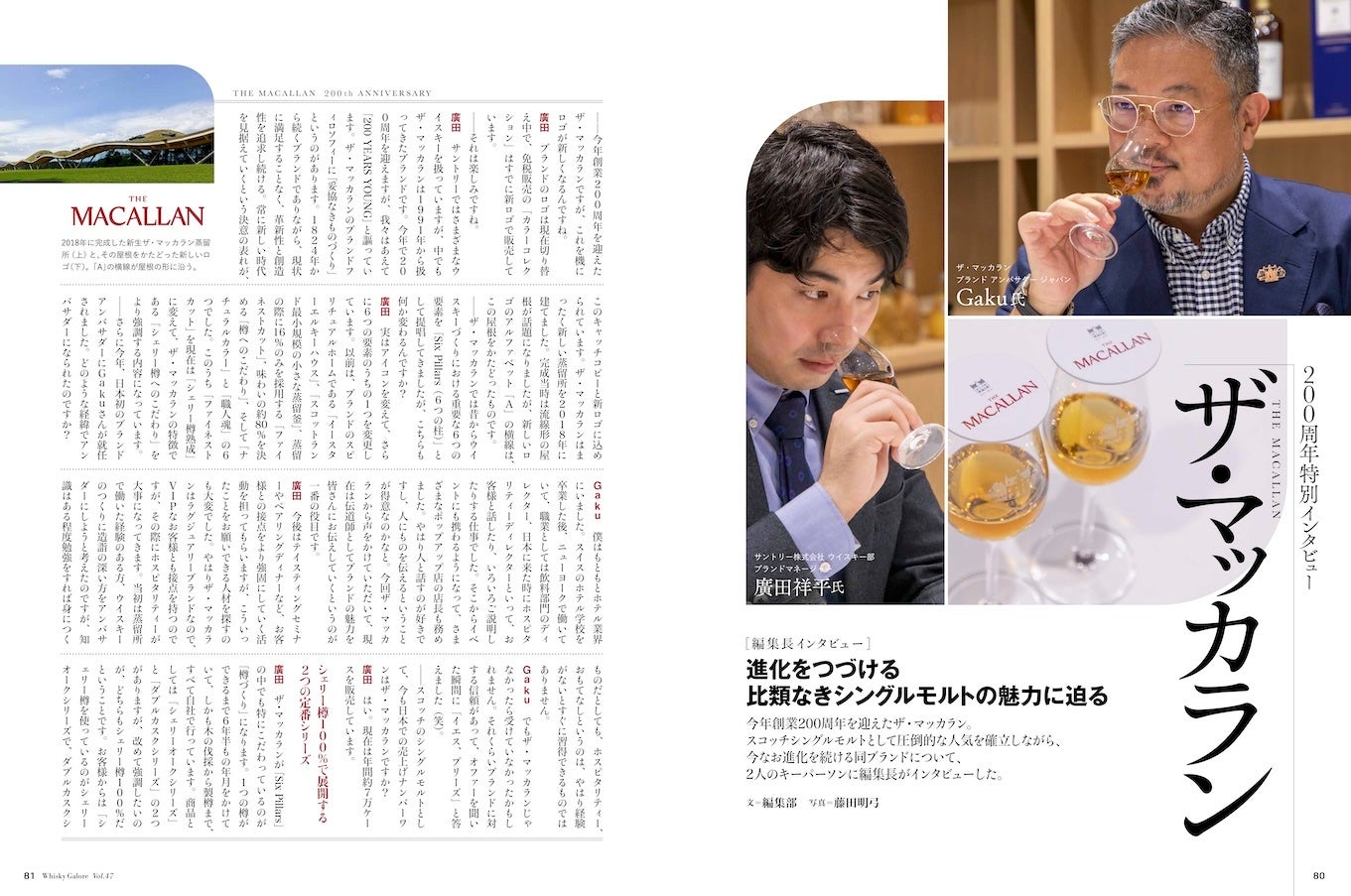 今年創業200周年を迎えたザ・マッカラン。1824年から続くブランドでありながら、比類なきシングルモルトとして圧倒的な人気を博しています。スペシャルな記念アイテム、進化し続ける同ブランドの今後など、愛好家が知りたいすべてをブランドマネージャーの廣田祥平氏、グローバルアンバサダージャパンのGaku氏に訊きました。