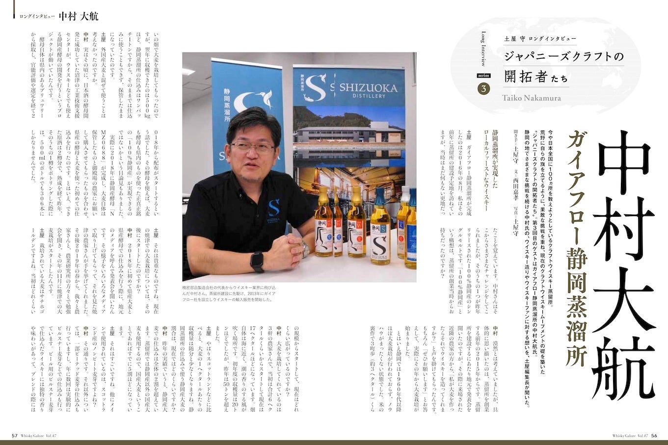 今や日本全国に100ヵ所を数えるクラフトウイスキー蒸留所。しかし、2000年代の初めまで、日本はもちろん、スコットランドにも“クラフト”と呼ばれる小規模なウイスキー蒸留所は皆無でした。現在のクラフトウイスキーのムーブメントの礎を築いた“ジャパニーズクラフトの開拓者たち”をゲストに迎えたロングインタビュー、第3回はガイアフロー静岡蒸溜所・中村大航氏が登場。