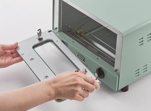 パンくずや油汚れがつきやすい扉・焼き網・パンくずトレイは簡単にはずせて水洗いが可能です。扉と焼き網がはずせることで庫内もお掃除しやすく、毎日清潔にお使いいただけます。