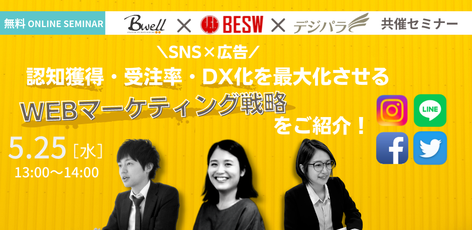 そこで今回は3社共催にて、WEBマーケティングのご担当者様向けに、SNSの最新動向や、PR手法、そもそものWEBマーケティングを行う上でのポイントなどについてお伝えさせていただきます。今後のマーケティング活動、営業戦略にお役立てください。