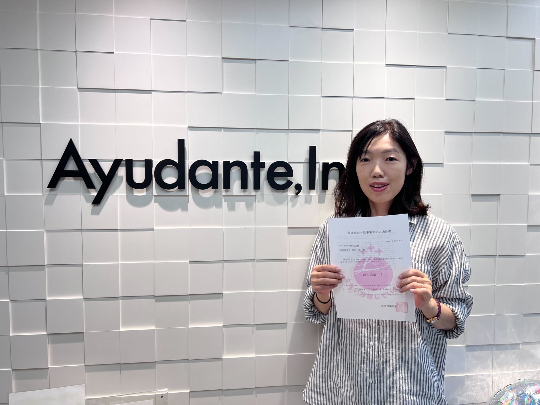 アユダンテ株式会社は、この度2025年4月14日付で厚生労働省から「えるぼし」認定を受けましたのでお知らせいたします。