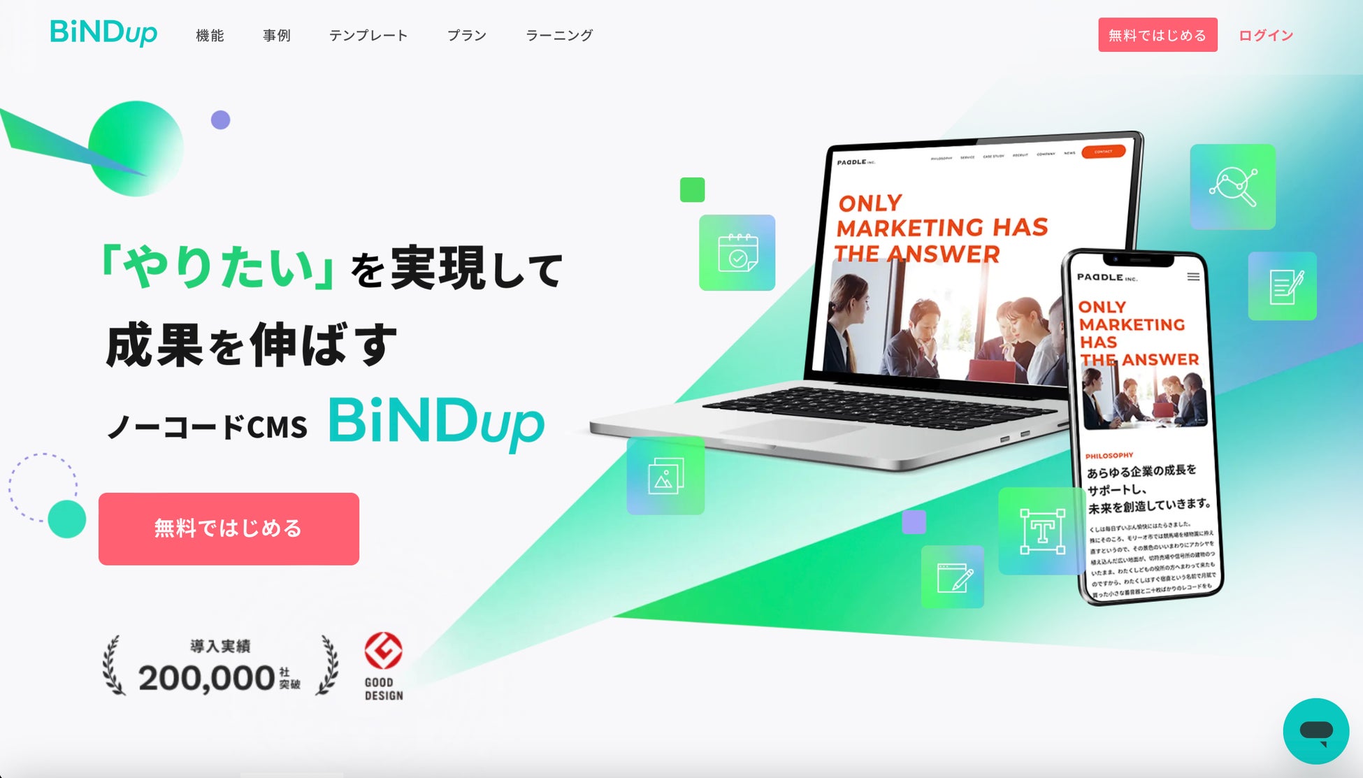 HTMLやCSSなどのタグやスクリプトを記述しなくても、 デザイン性の高いテンプレートと特許取得のブロック編集によって、ノーコードでWebサイトを作成できるサービスです。これまでにスモールビジネスを中心に累計20万ユーザーに利用されています。