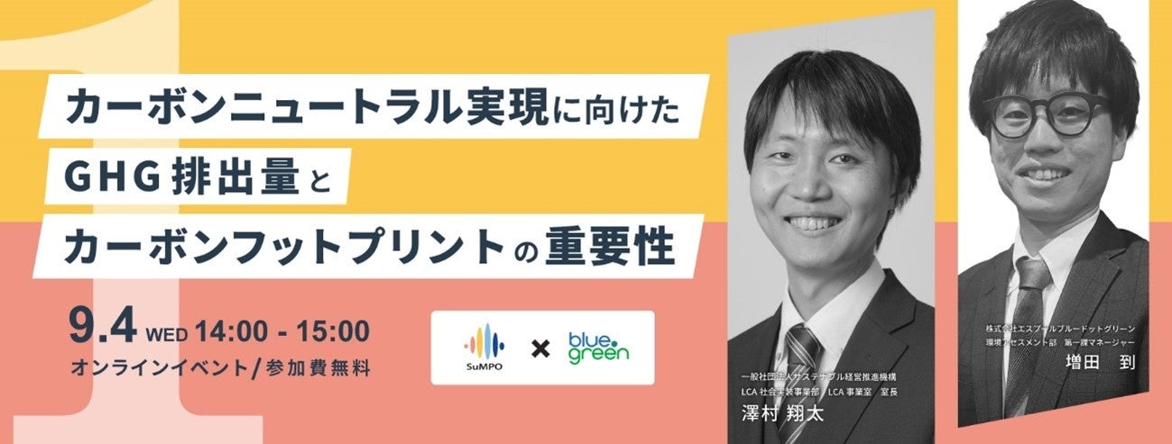 2024年9月4日、エスプールブルードットグリーンは一般社団法人サステナブル経営推進機構(以下「SuMPO」)様と共催ウェビナーを開催いたします。本ウェビナーでは、Scope 3とCFPの関係性やCFPの基礎知識、LCA(ライフサイクルアセスメント)との違いを、一般社団法人サステナブル経営推進機構(SuMPO)様をお招きし、徹底解説いたします。