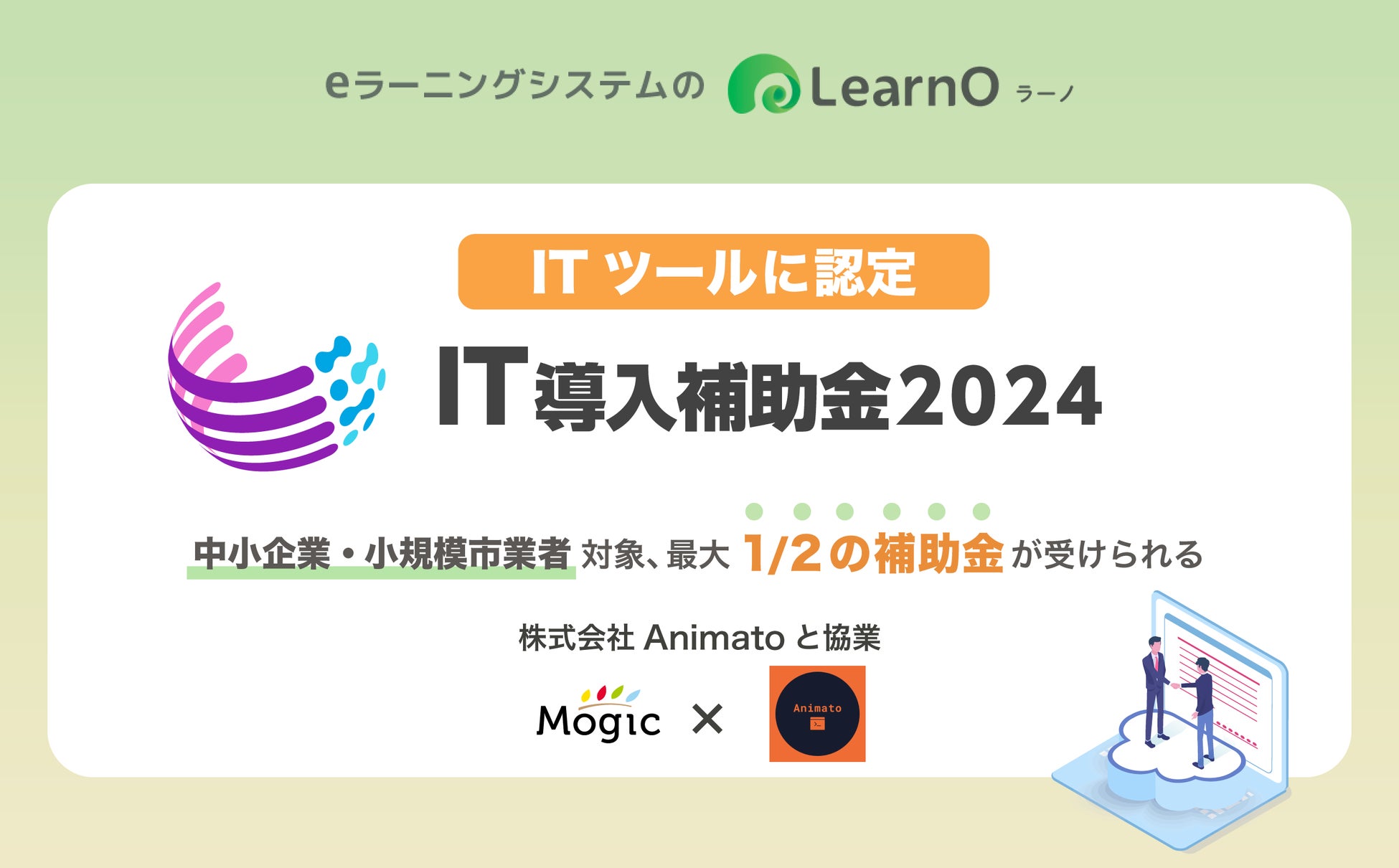 この度、Mogicが開発および販売するeラーニングシステムLearnOは、LearnO正規販売代理店である株式会社Animatoとのパートナーシップにより、経済産業省が推進する「IT導入補助金2024」の対象ツールに認定されました。