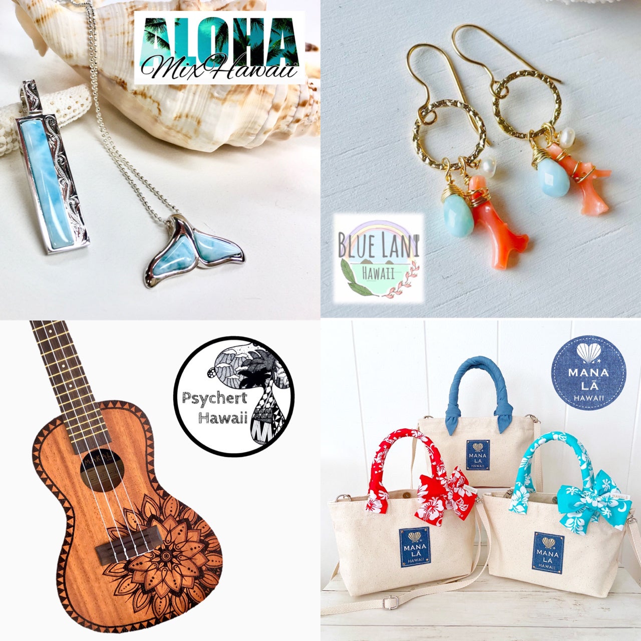 ハワイアン生地を使ったオリジナルのBAGやPouchなど布小物を中心に、一つ一つ手作りしたハワイからのセレクト商品を販売します。日替わりでワークショップも開催します。