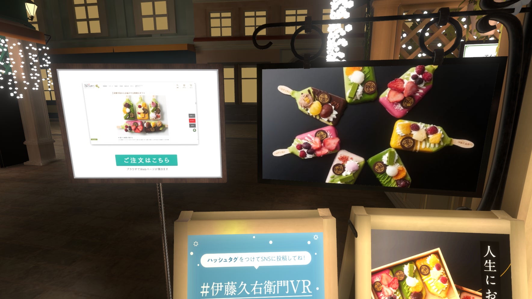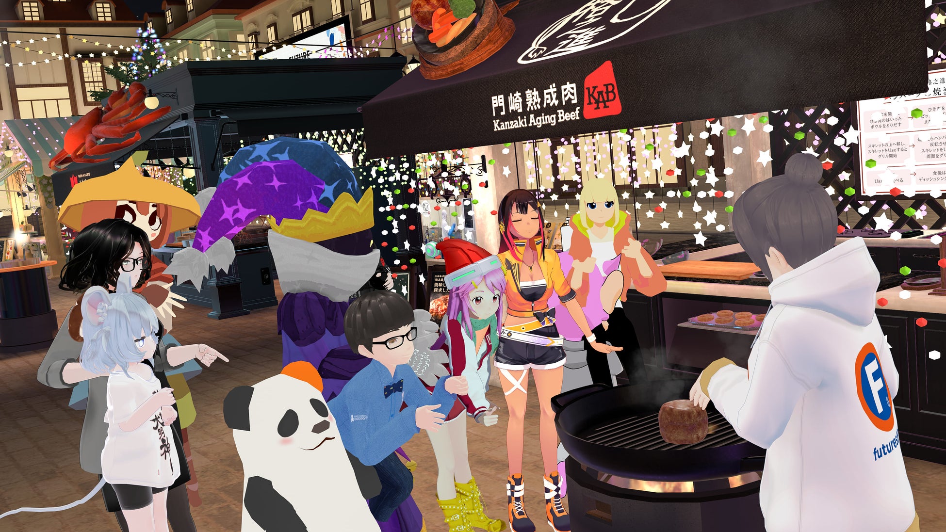 この可能性をより深めるべく、フューチャーショップは世界最大手のソーシャルVRプラットフォーム「VRChat」を運営する米VRChat社と公式パートナーシップ契約を締結いたしました。これにより「FUTURE 20th SQUARE」内では、メタバースで商品を作る・食べるなどの体験をし、そのまま実際のECサイトを閲覧することが可能になりました。