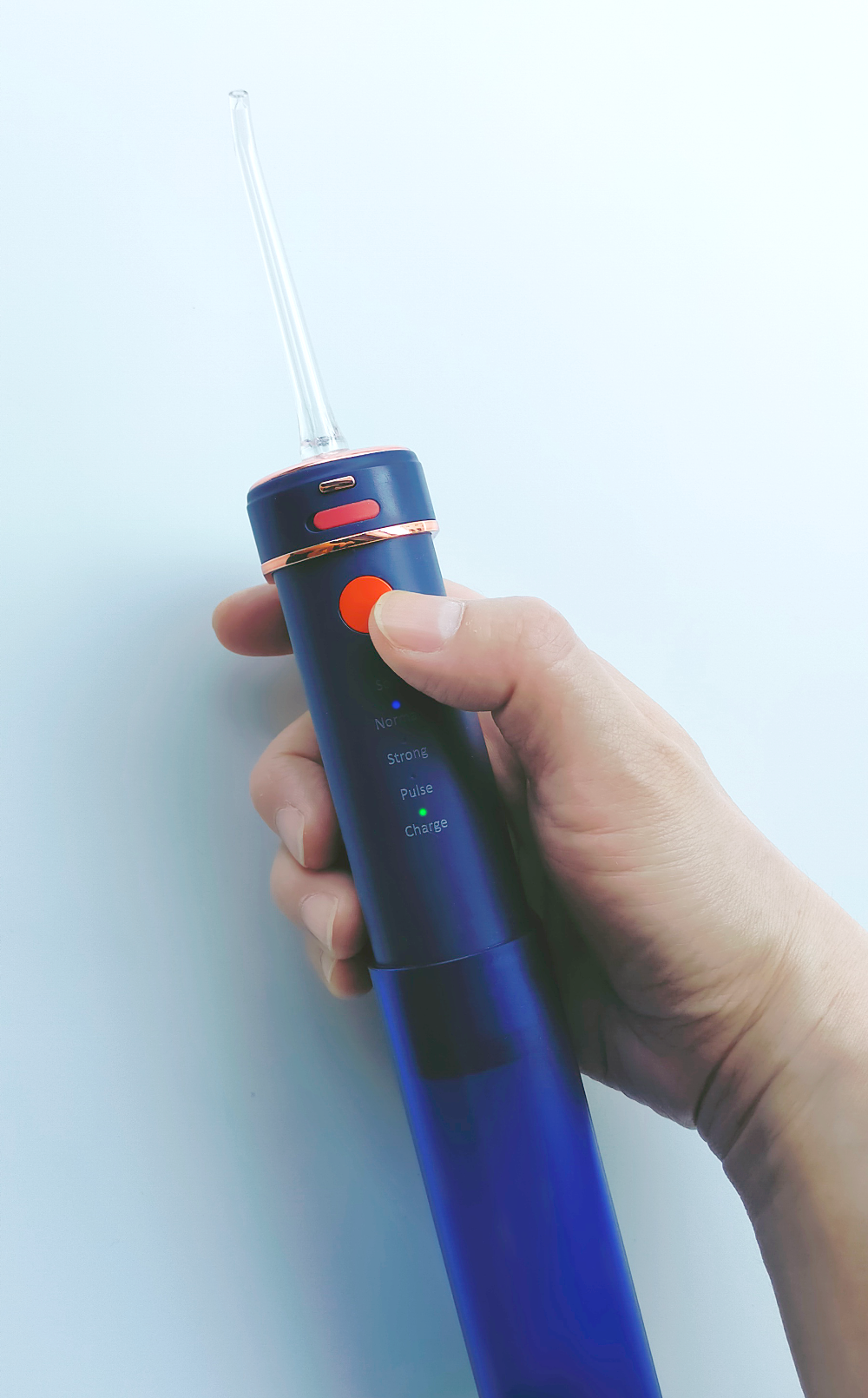 口腔洗浄機器は大容量の据え置きタイプと、携帯しやすいハンディタイプがあり、どちらも使い方は簡単。タンクに給水し、ノズルの先を歯の付け根や歯間に向け、軽く口を閉じたら電源をON。あとはノズルを動かしながら水流をあてるだけ。
